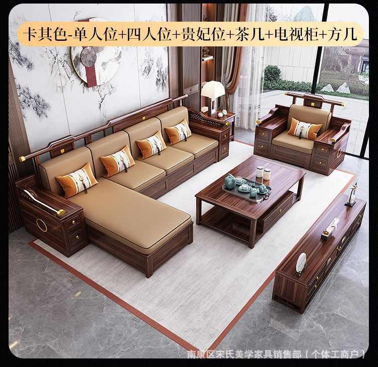新中式乌金木实木沙发别墅客厅家具冬夏两用大小户型贵妃储物沙发